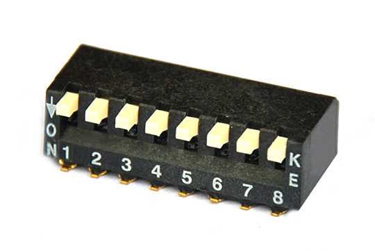 撥碼開關作為需要手動操作的一種微型開關,在通訊,安防等諸多設備產品上廣泛應用。大部分撥碼開關採用直插式(DIP),在兩態之間變換,再根據不同的位元組成2的N次方的不同狀態,實現不同的功能。
