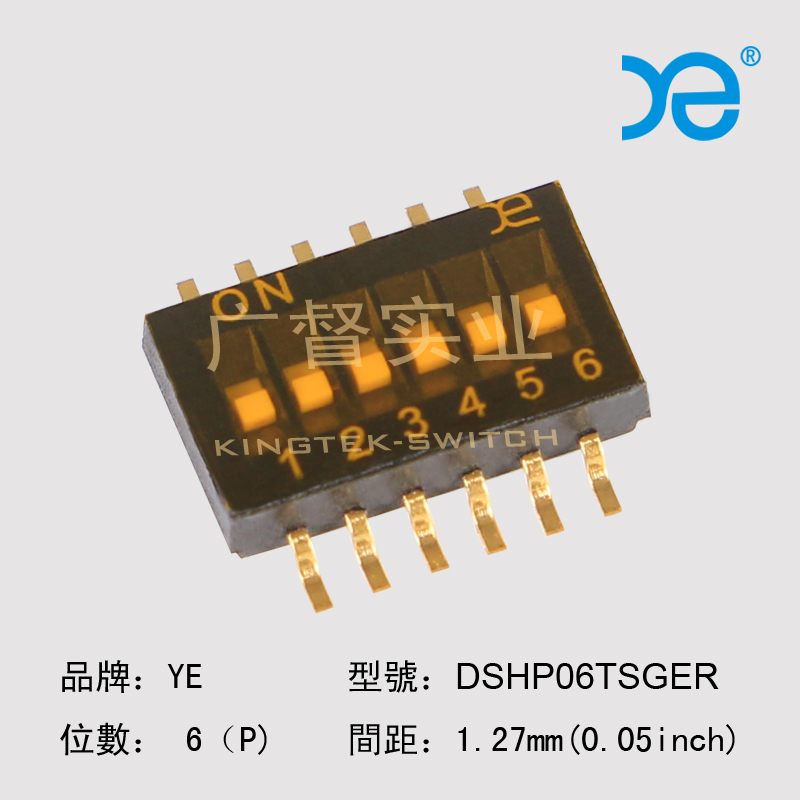 产品特点:1.27mm脚距(即300mil/SOP标准(0.05英寸脚距);贴片式 (SMT)拨码开关;标准镀金接点,贴附耐电高温薄膜;可耐高温的塑料本体设计。